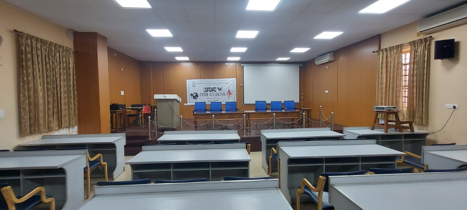 Audio Video Hall The audio video hall has a good seating capacity for 150 people. The hall is well equipped with good audio and video systems. There is a separate projector and podiums for seminars and other programs.